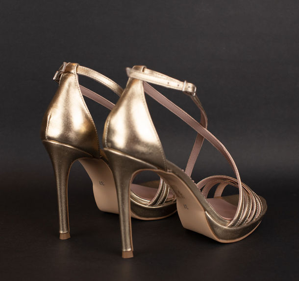 Chiara Sandale dama cu platforma din piele naturala aurie. Tocul masoara 10,5 cm, iar platforma 1,5 cm. Modelul poate fi personalizat gratuit la comanda. Tocul poate fi subtire de 7, 9 ,10,5 cm cu platforma 1 cm sau gros de 5, 7, 9 cm . Tocurile au grosimi diferite!